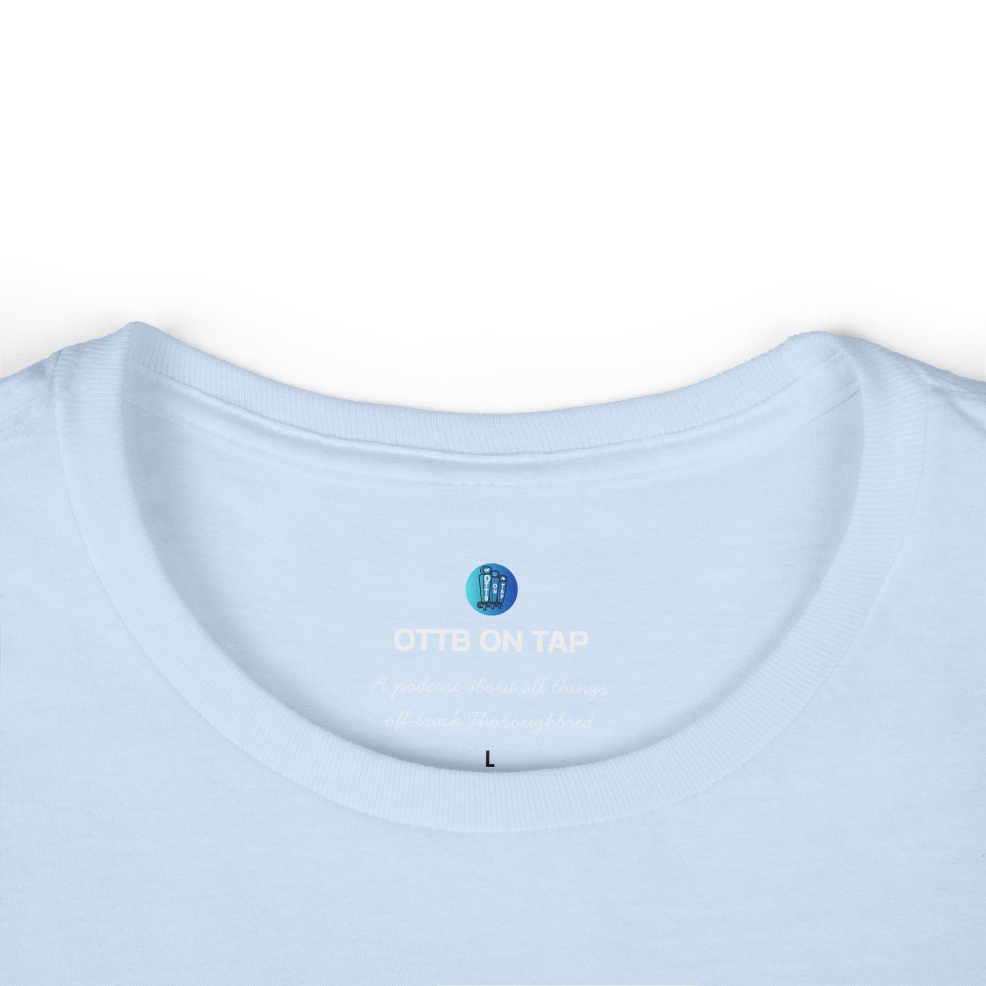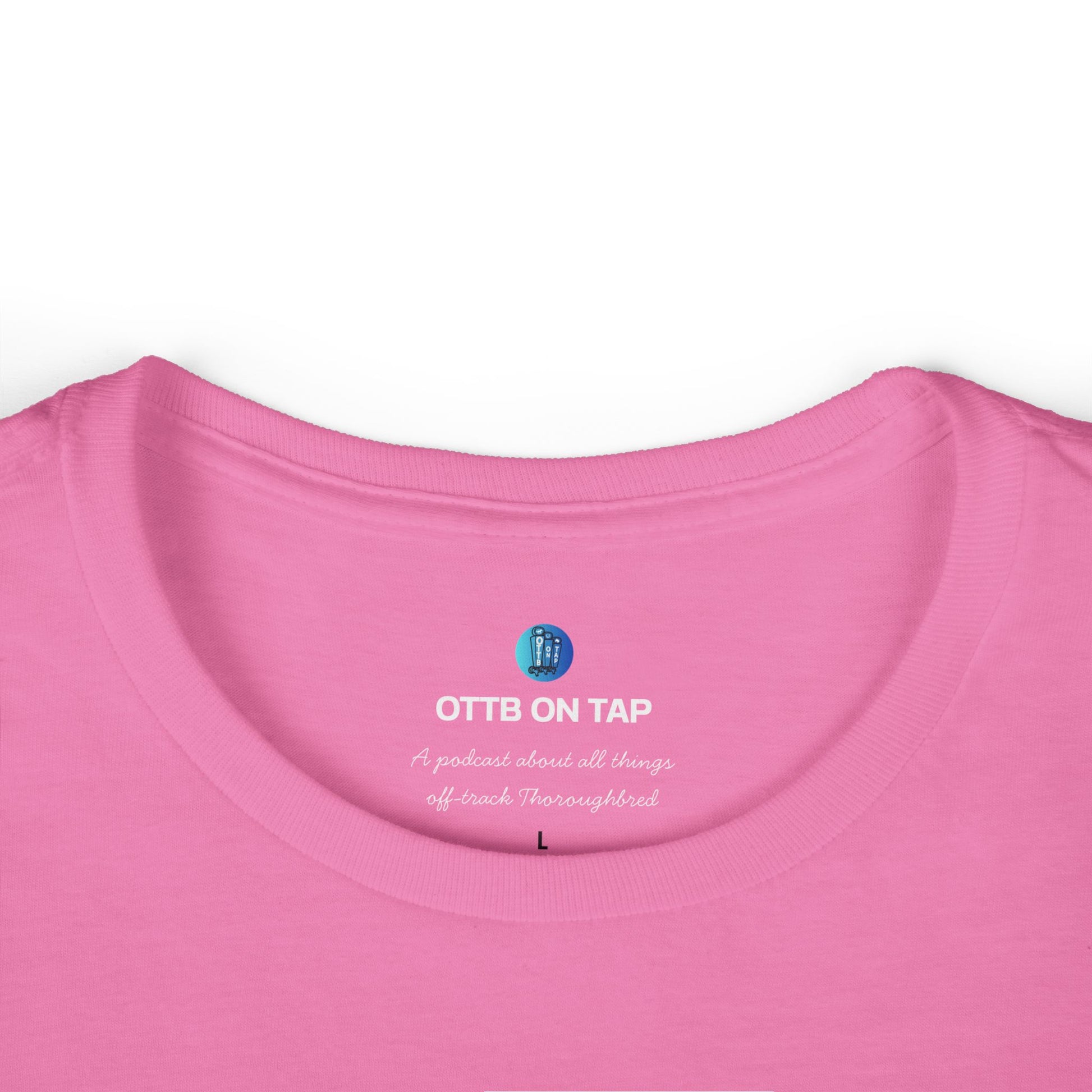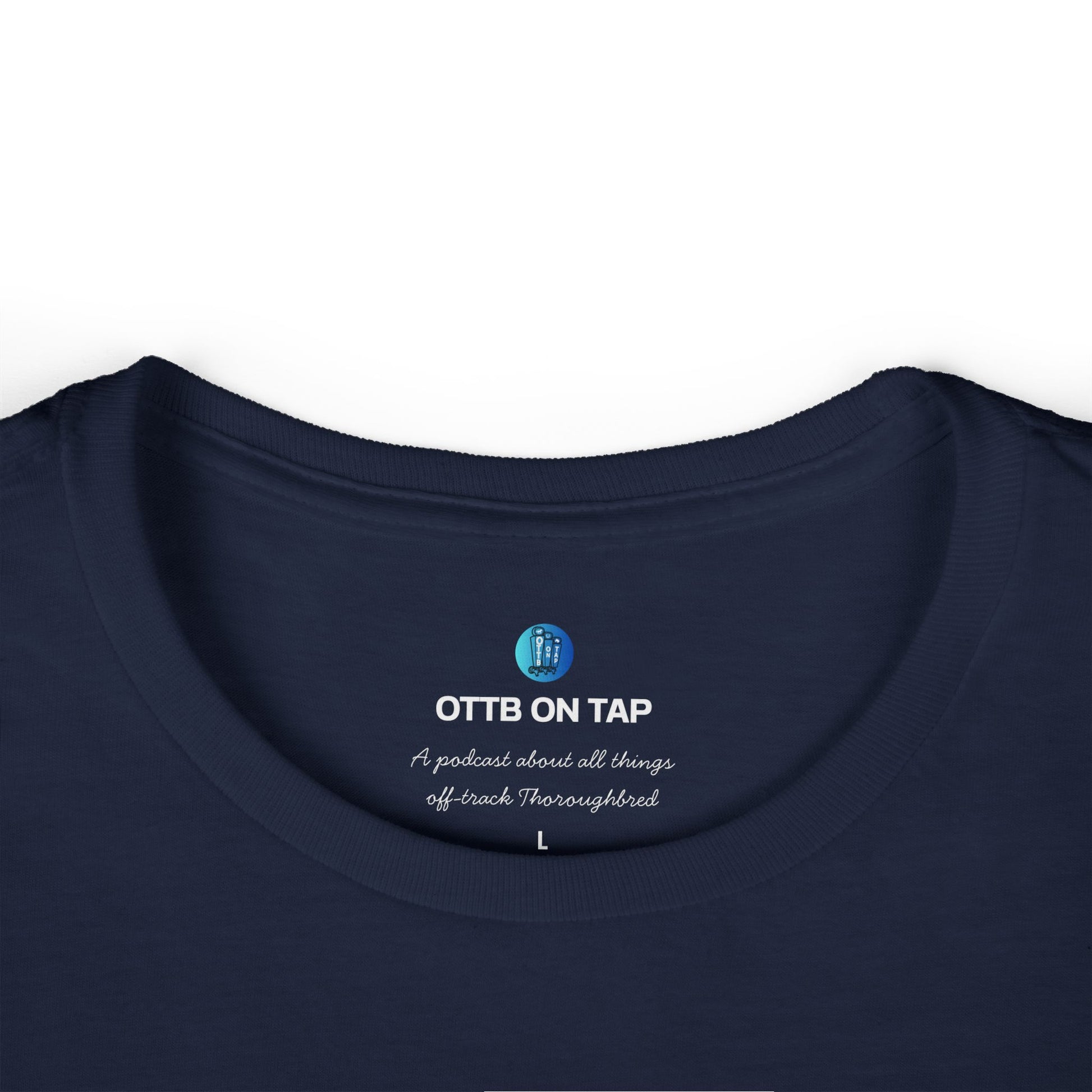 From the voices behind the OTTB on Tap Podcast, this tee is more than just a shirt—it’s a statement. Whether you’ve retrained one or dream of doing so, wear your support for second chances and Thoroughbreds with heart. Designed for OTTB lovers, riders, and podcast fans, this comfy, flattering tee is perfect for barn days, grooming at shows, or just repping your favorite underdogs.